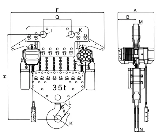 Limit Switch: The limit switch device is installed where the weight is lifted on and off make the motor to stop automatically so as to prohibit the chains from exceeding for safety.