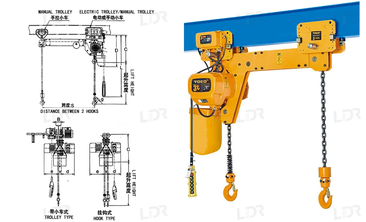 ▲ Electric chain hoists an ideal tool to lift heavy objects, load and unload ,maintain equipment, with reliable performance ,convenient operation, advanced structure, small volume and wide application. We are specializes in designing and manufacturing of top grade manual chain block, lever block, electric chain hoist and some other lifting equipment.